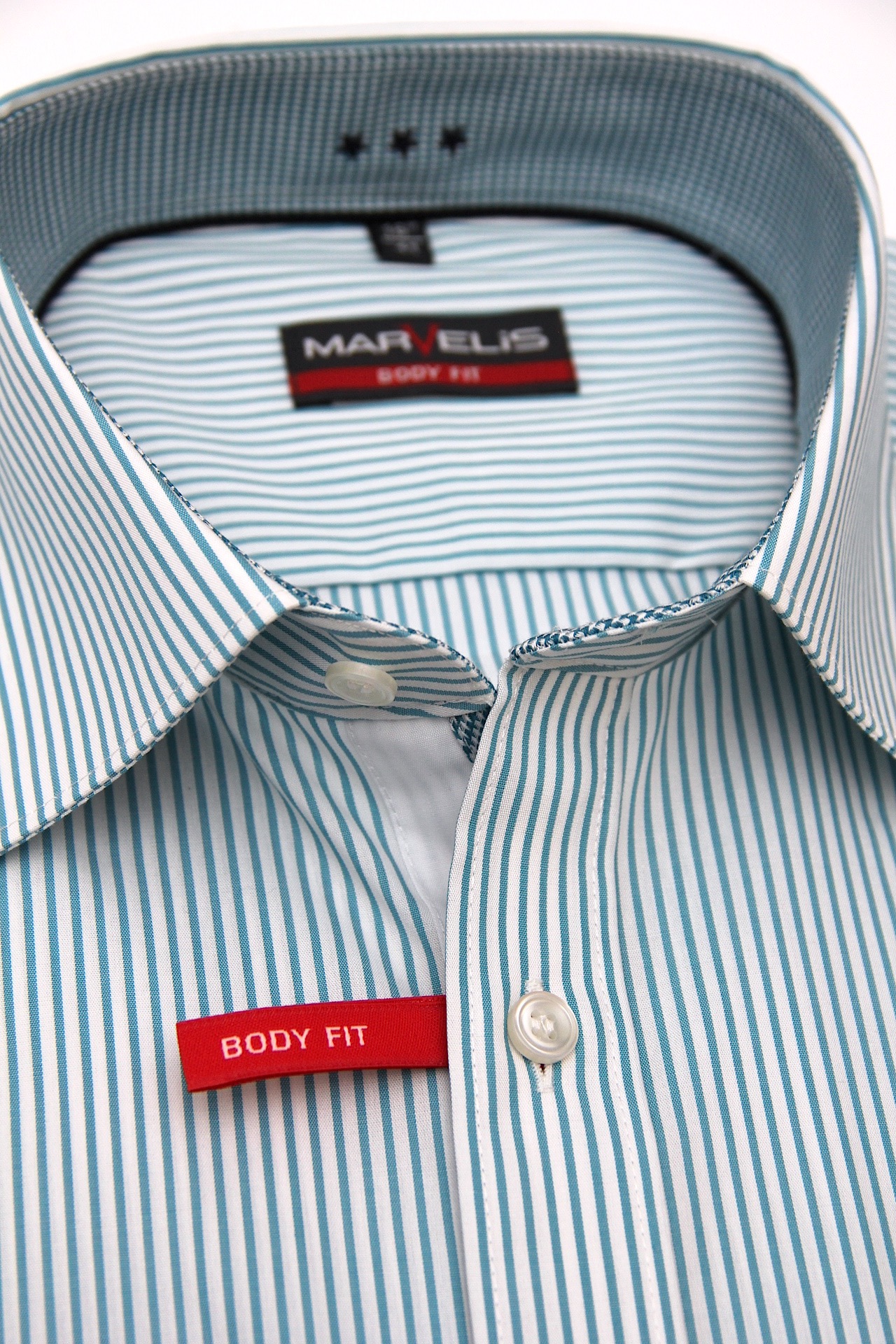 Ein Streifen in smaragd/weiß. Kragenform New Kent.
