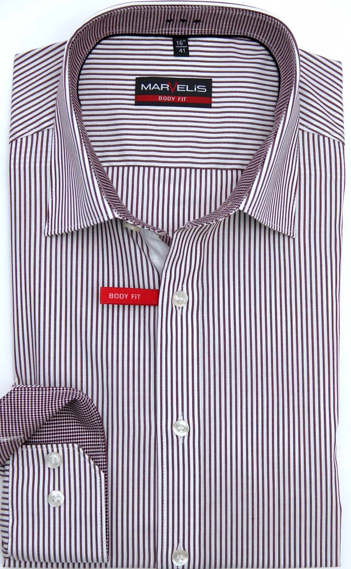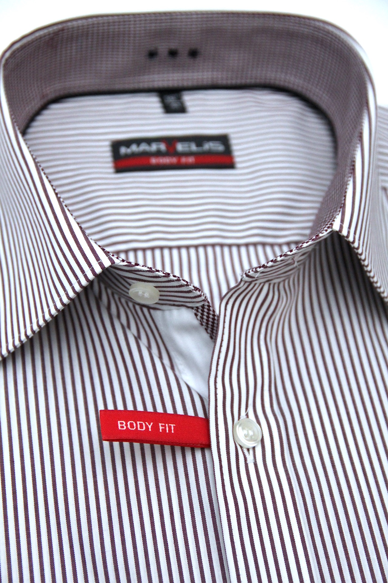 Ein Streifen in bordo/weiß. Kragenform New Kent.