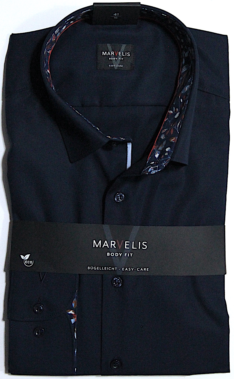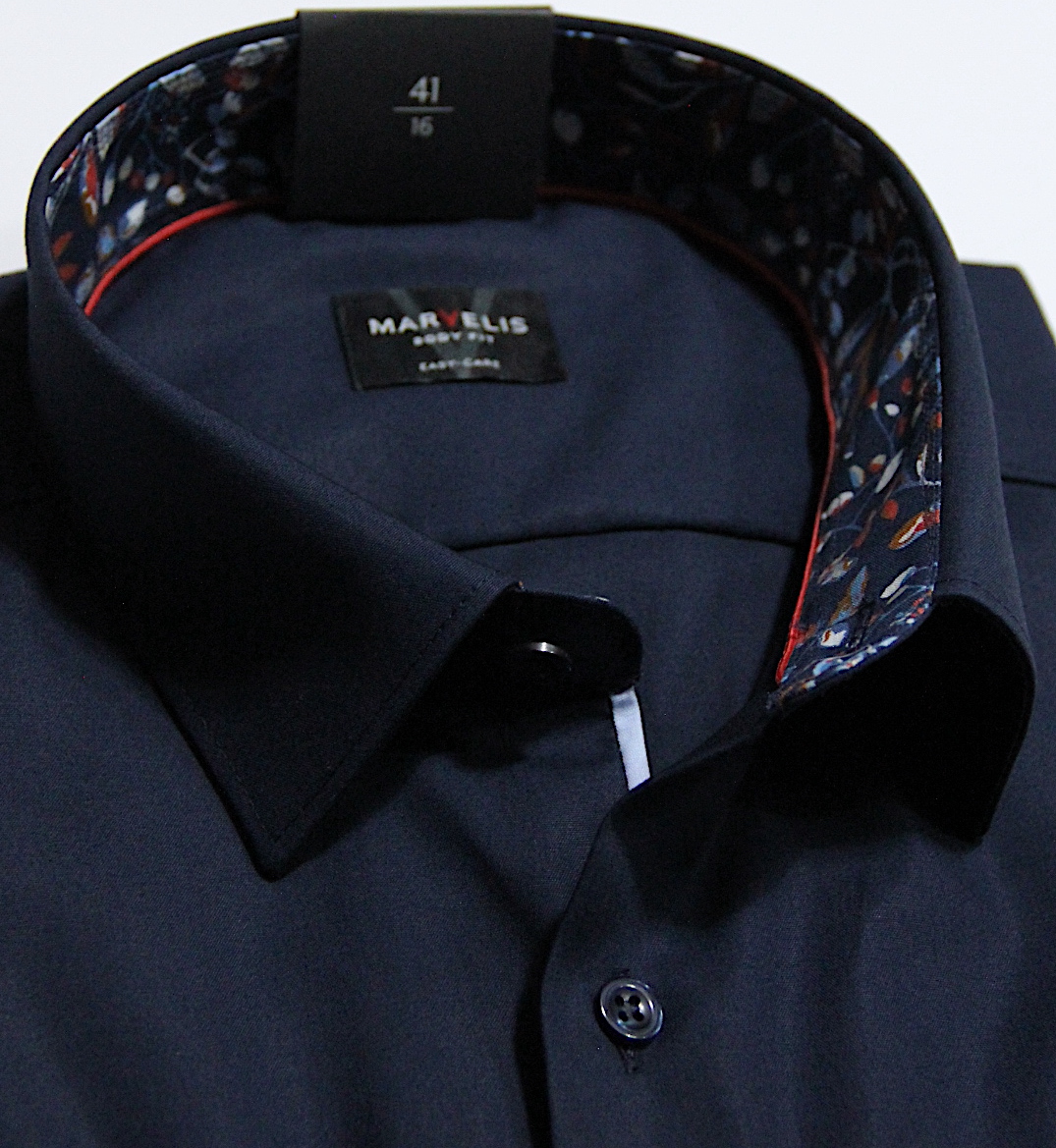 Kragensteg, Manschette und die Knopfleiste sind auf