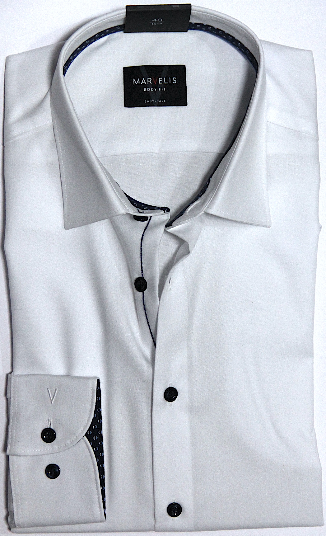 Kragensteg, Manschette und die Knopfleiste sind auf