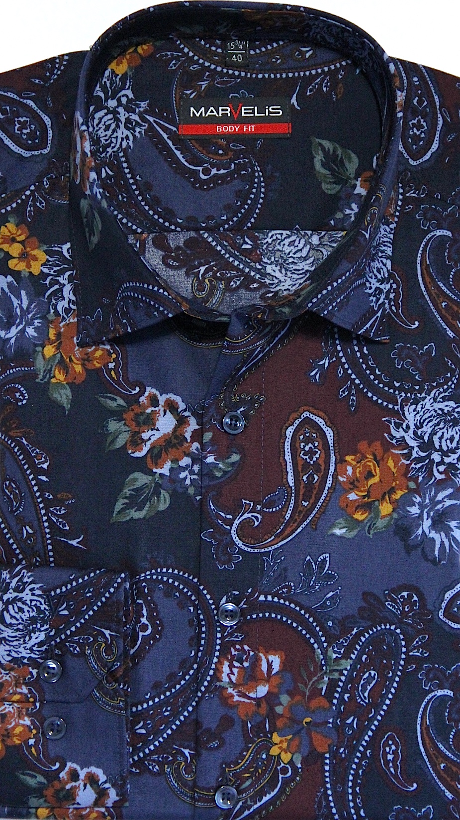 in den Farben messing, oliv, weinrot auf Marinefond.