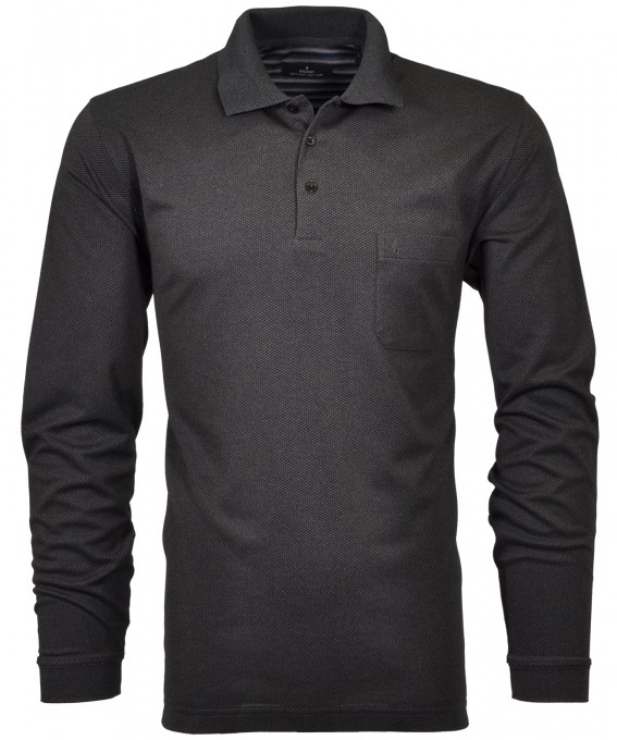 Softknitpolo Langarm 5493691-193 Fb. Grau-Melange